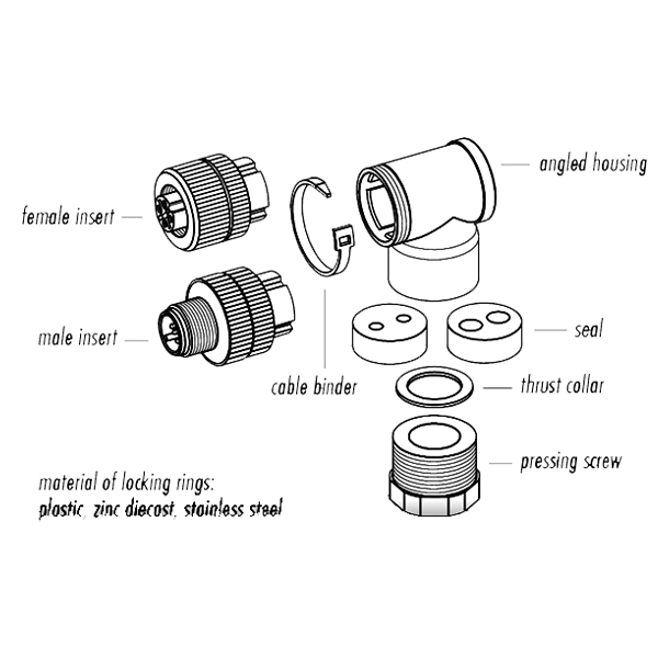 M12,A-coded, connecto90 degreesr,female metal locking system,screw termination solder termination on 12 pol