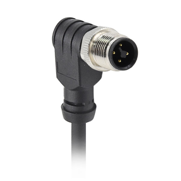 M12 T code 4pin right angle male cable plug
