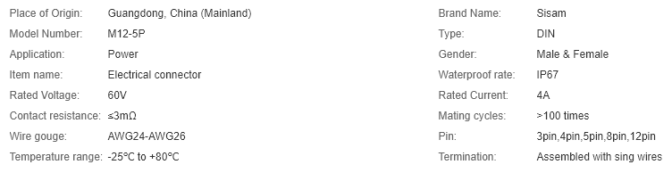 M12 waterproof socket 5 pin male connector--Westsam Technology