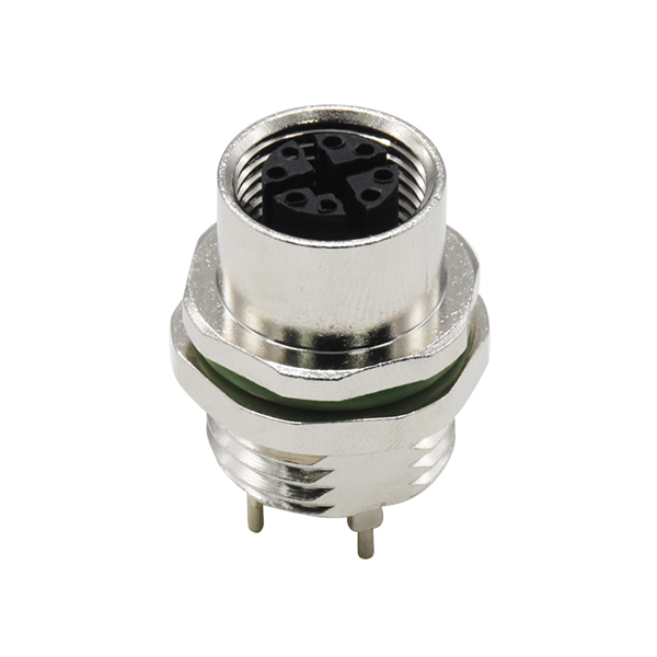 M12,X code,Female panel mount connector solder front fastened