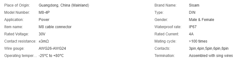 4 pin male and female M8 cable connector