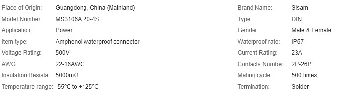 MS3106A 20-4S IP67 waterproof military connector--Westsam Technology