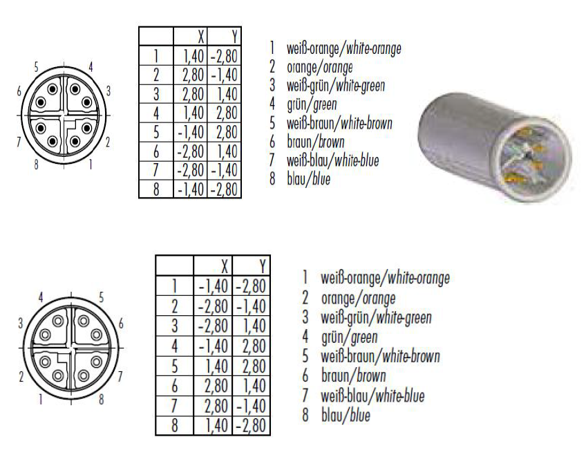 在M12插头中有多达11种不同的编码结构分为:A编码,B编码,D编码,L编码,T编码,C编码,X编码,K编码,S编码,Y编码,US编码。