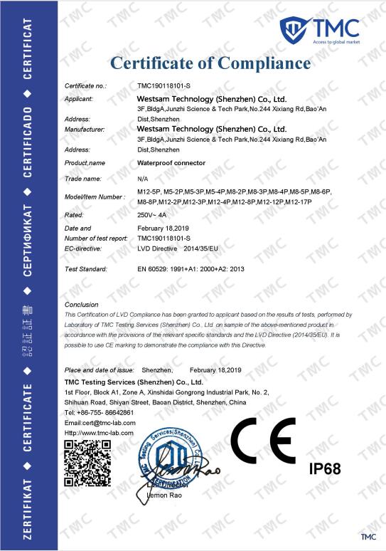 行业标准: IEC 61076-2-105 线材外被材料: 客户定制材料